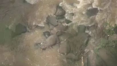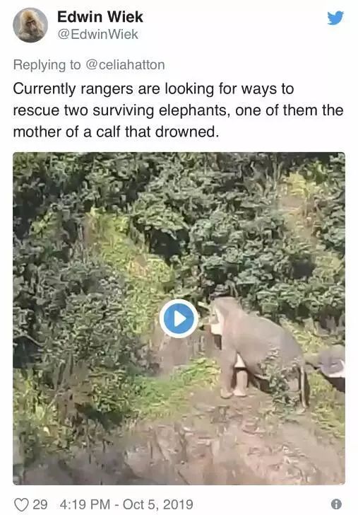 此外,工作人员还在附近的悬崖边上发现了另外2头幸存的大象,目前正试图把它们转移到安全的区域。