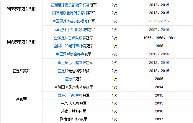 贰零壹伍我来了 发表于 2017-2-25 19:41 广州恒大淘宝历史荣誉: